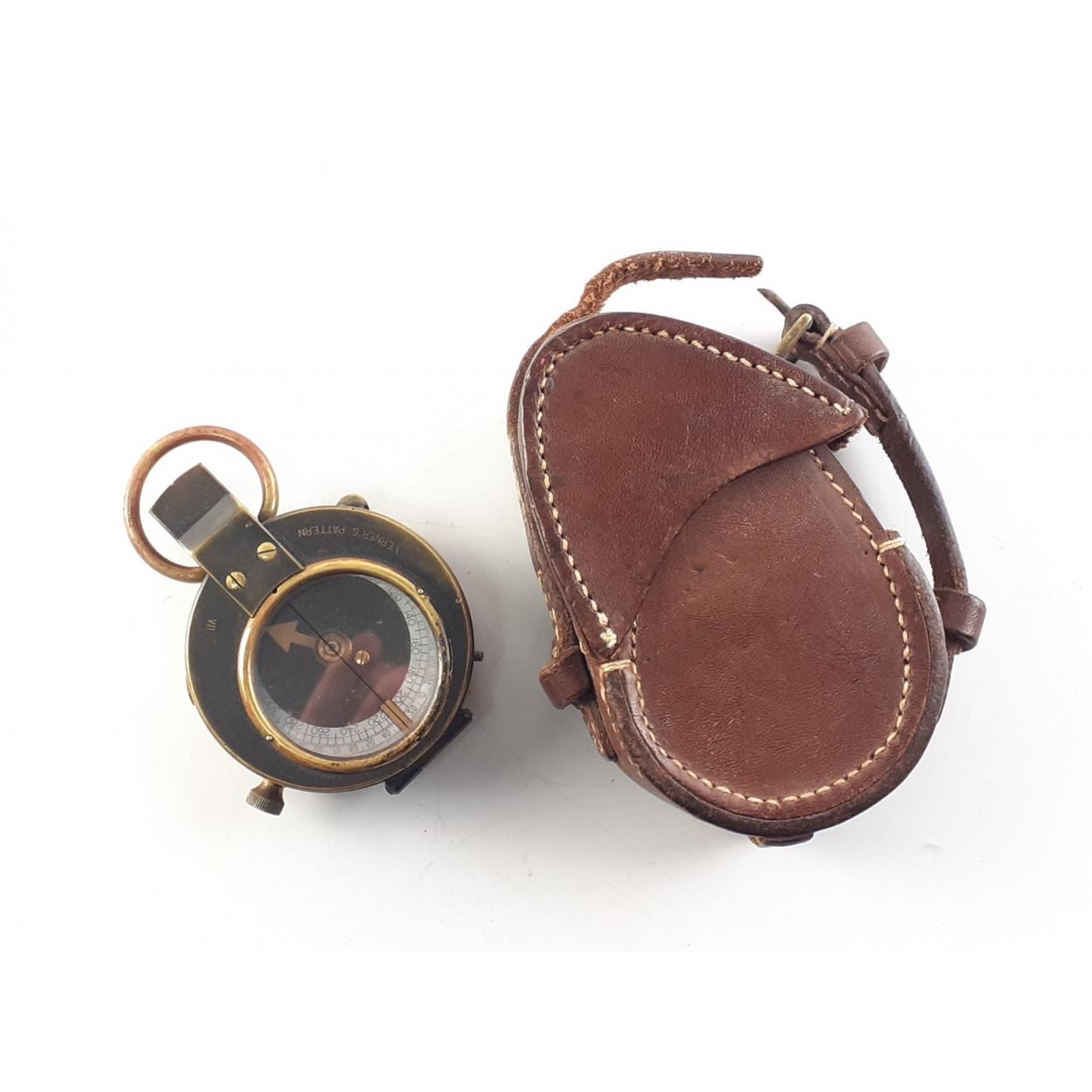 Lovely leather cased Verners pattern VII 1916 dated Cruchon & Emons military Broad Arrow marked compass with Mother of Pear dial. In good clean working condition.