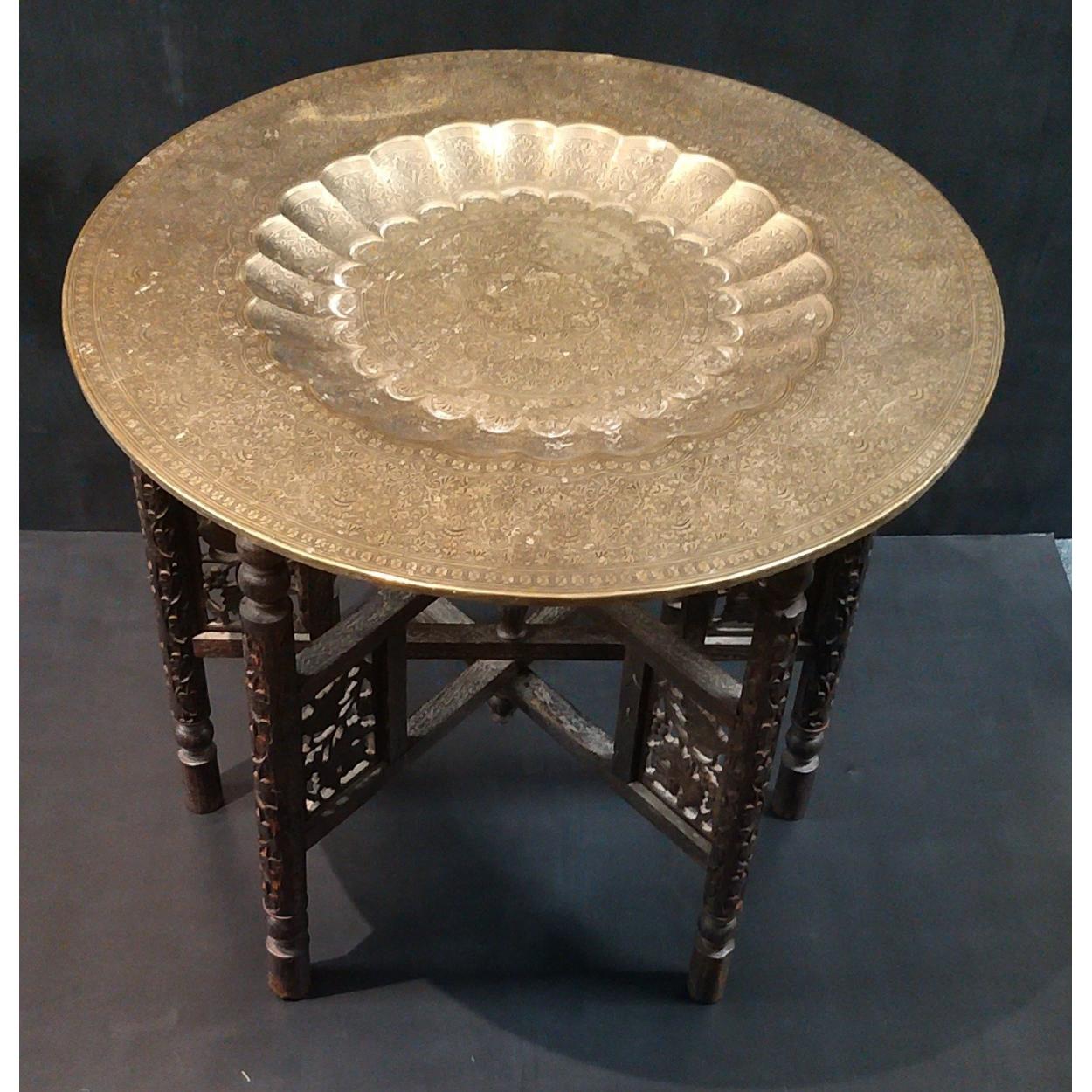 An antique Metal Brass Indian / Asian folding table. 59cm diameter. 53cm tall