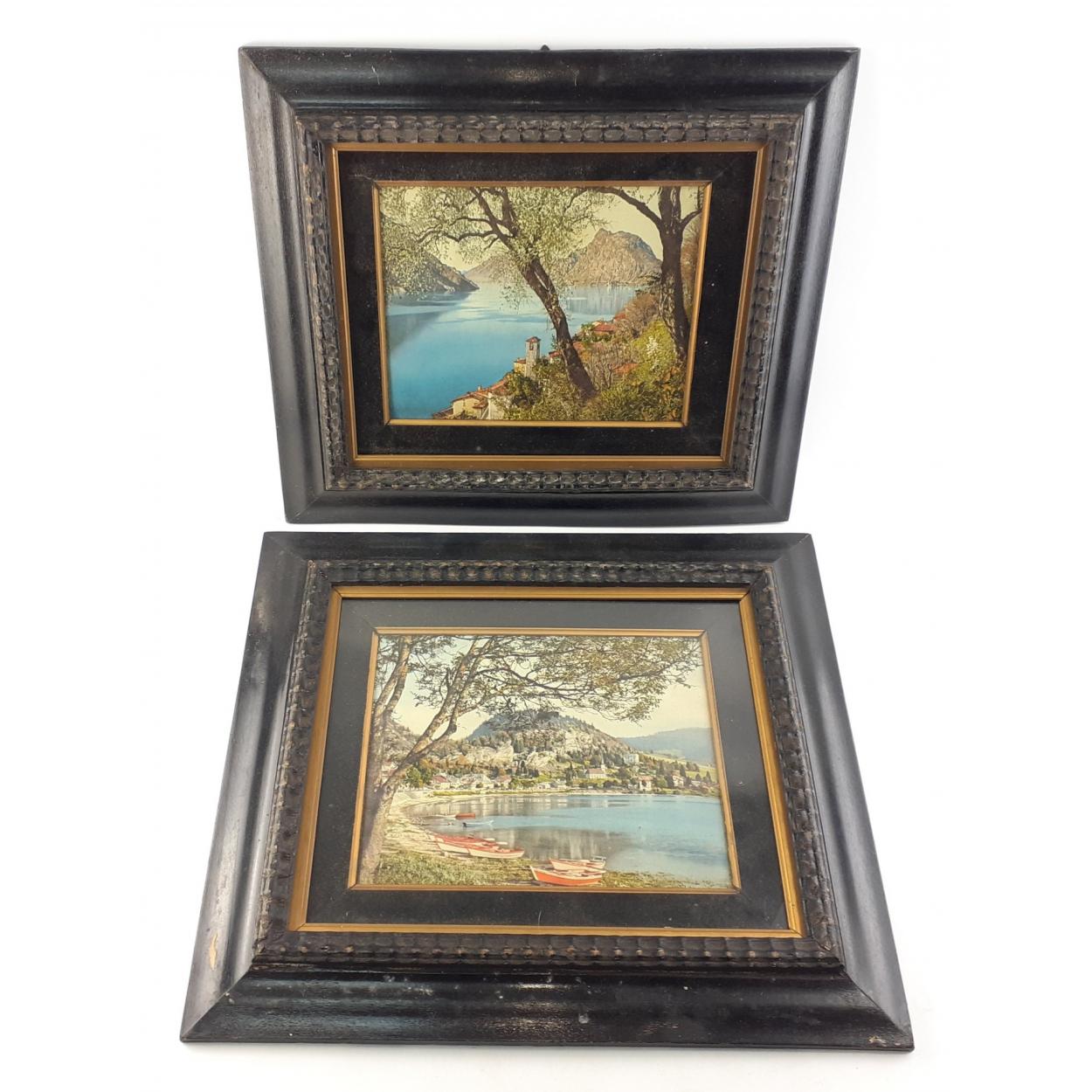 Two wood framed antique Italian prints of Lakeside scenes. Each 47cm x 41cm approx.