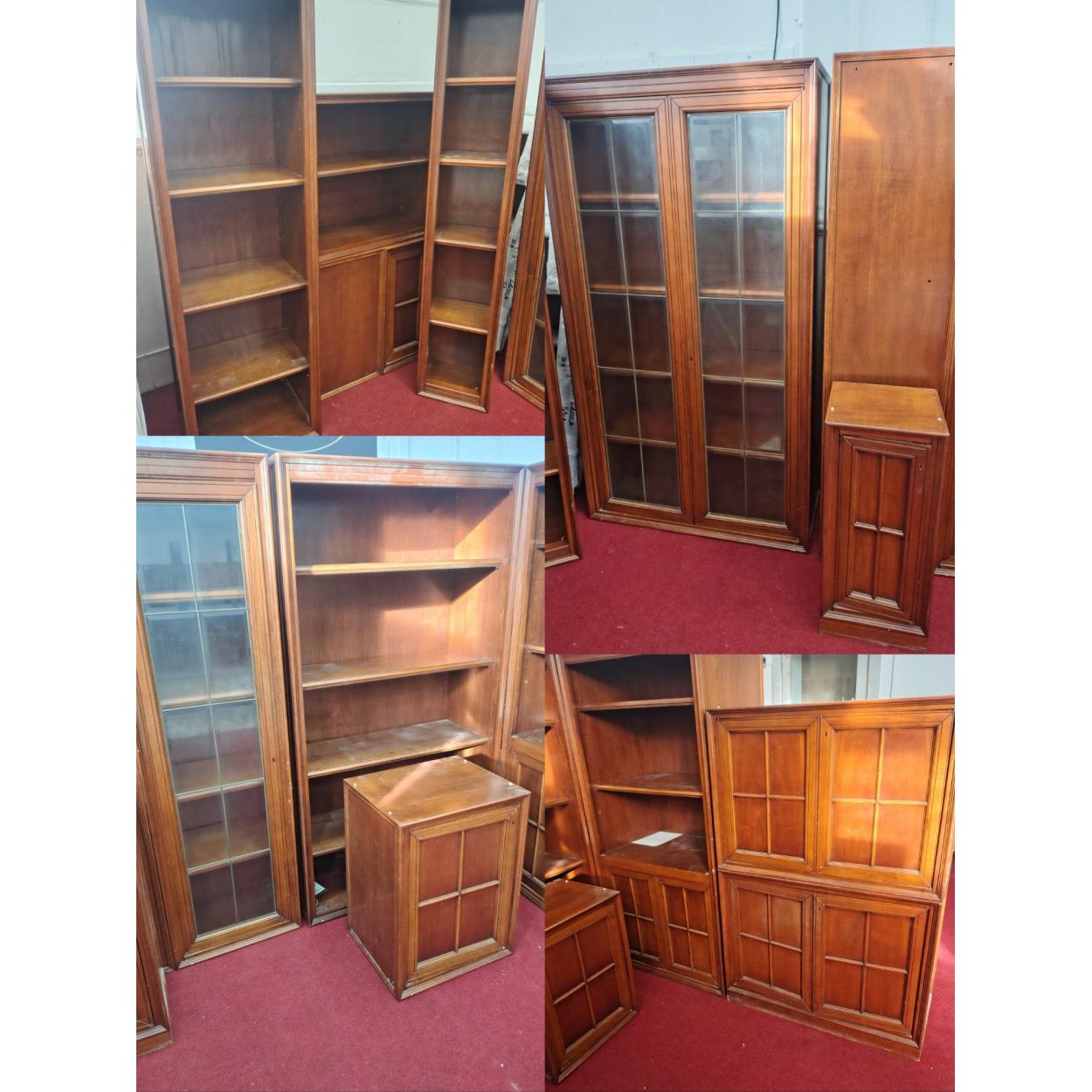 From the library of a substantial property in Italy. A superb bookcase and cabinet suite. Comprising Glass fronted bookshelf, Wide and narrow open shelving, storage boxes etc.