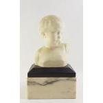 An antique Alabaster bust of a childs head on plinth. The bust itself is 20cm approx, 33cm of plinths.