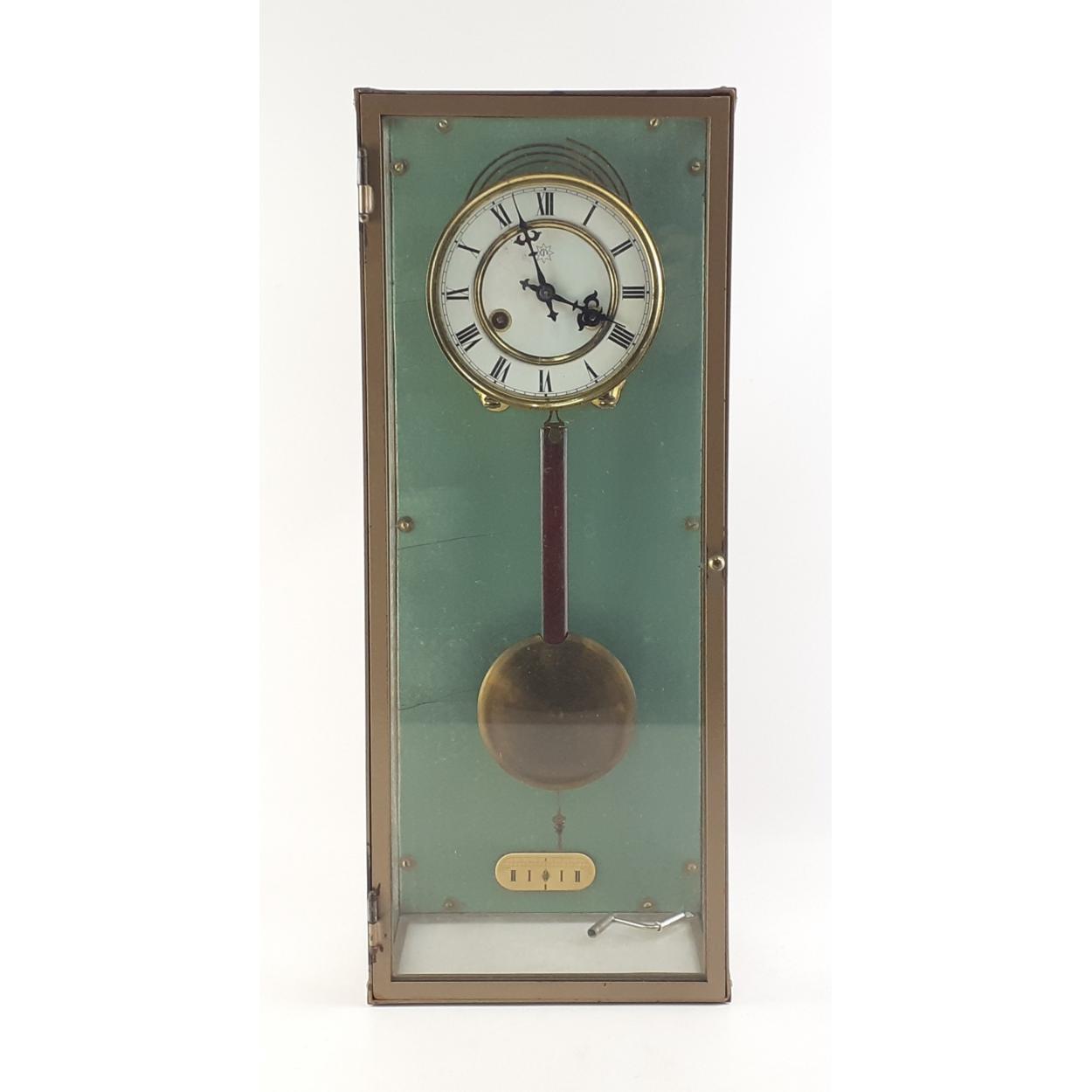 JUNGHANS glass cased pendulum clock with winder. Unusual piece. Stands 55cm high.