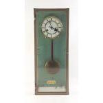 A COMITTI London modern brass pendulum clock on glass faced case. With brass like embellishments to case. 60cm tall approx.