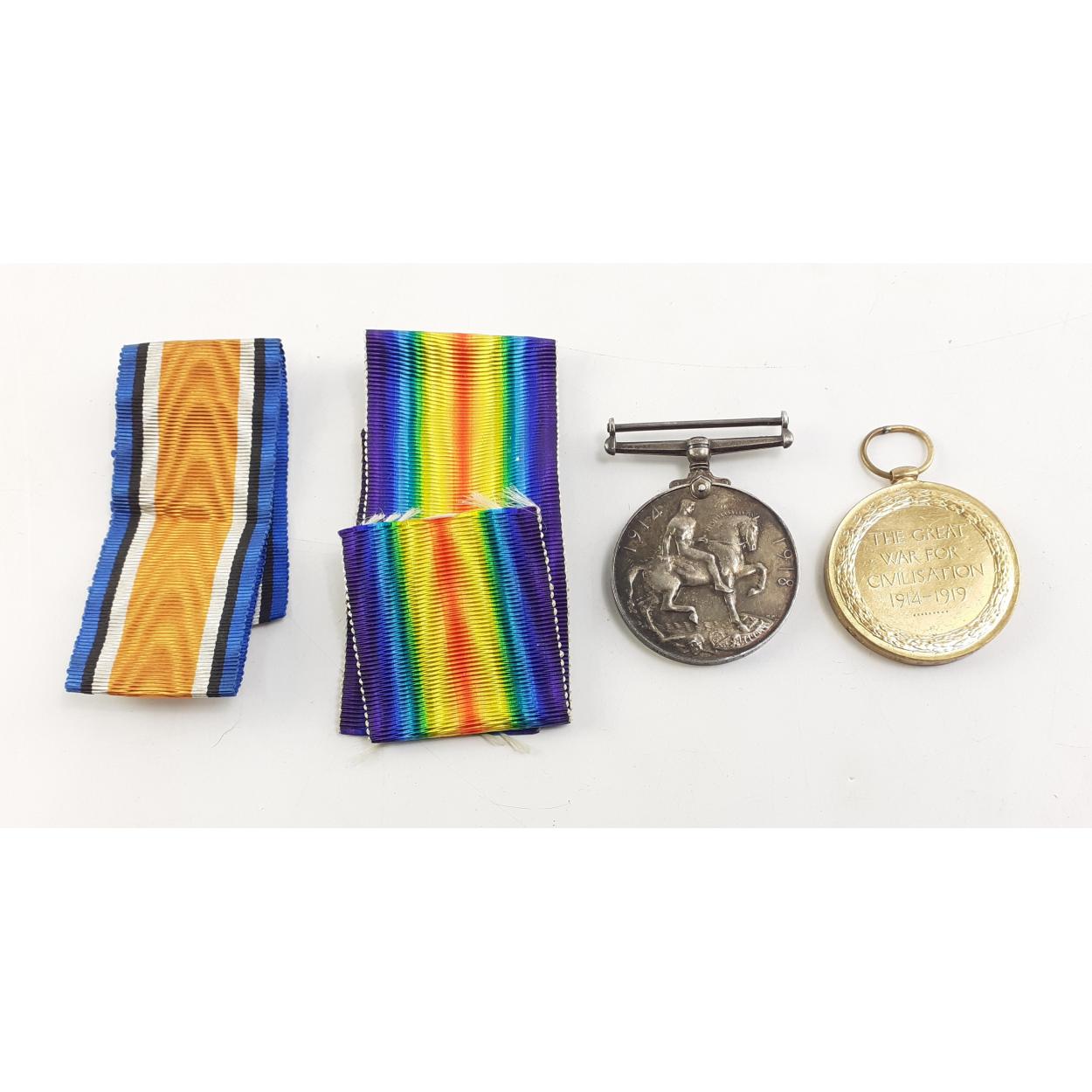 WWI Medal pair to 023104 Cpl. P/.W.G. Gun A.O.C.