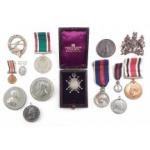 Interesting lot of assorted medal and medallions. Some Coronation medals, Special Constable medal, Cap badges and others.