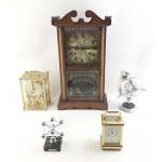 A 31 day wall clock, two carriage clocks (one Quartz), a Hygro barometer etc. Mixed lot.
