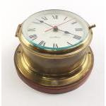 A stylish antique brass bulkhead clock, key not present. A good orginal piece that displays superbly well.