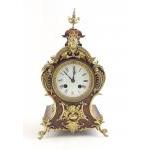 An ornate Jappy Freres French brass clock. Missing key and rear cover. Stands 34cm.