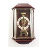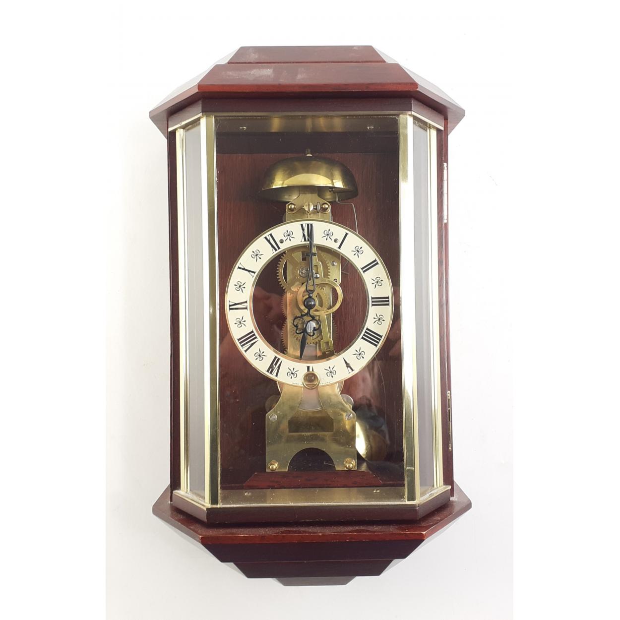 A brass German skeleton style wall clock 36cm tall approx.