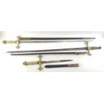 Two Masonic style ceramonial swords and a matching dagger.