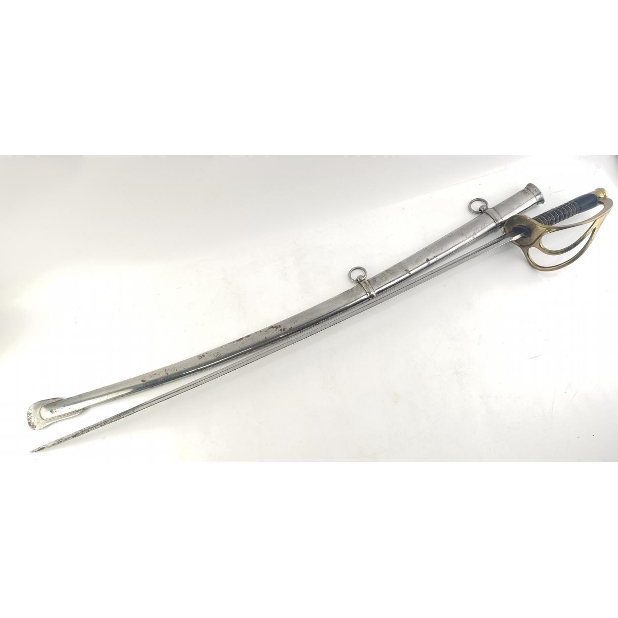 A brass handled curved repro cavalry sword.