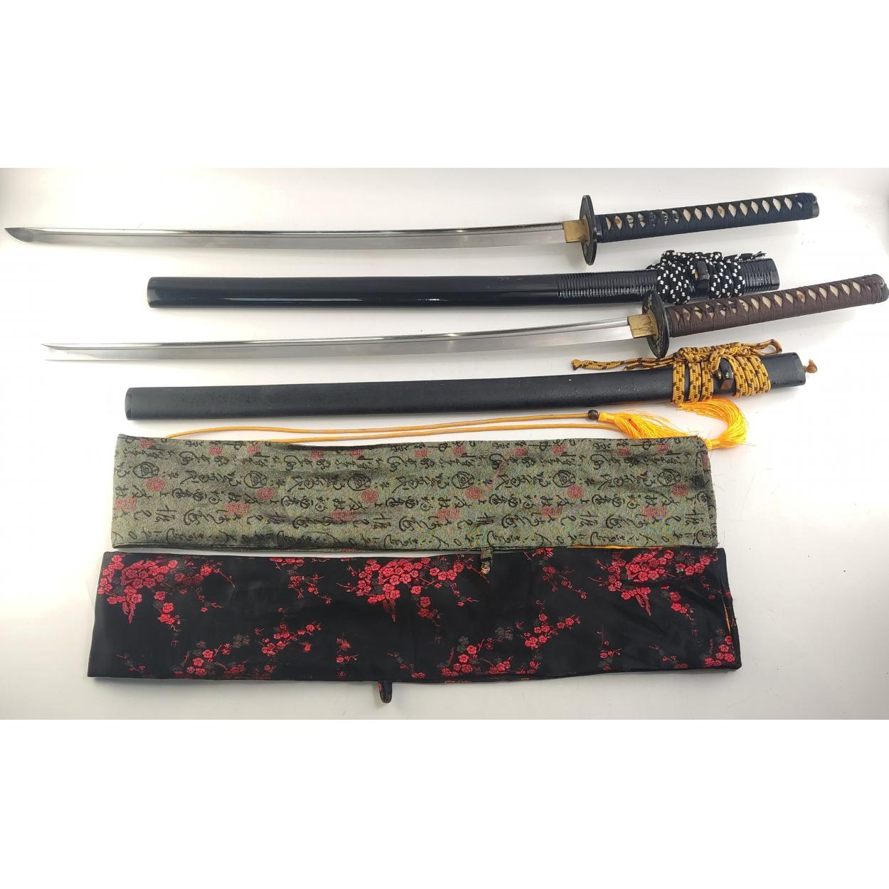 Two large modern SAMURAI swords. Nice clean condition with silk cases.