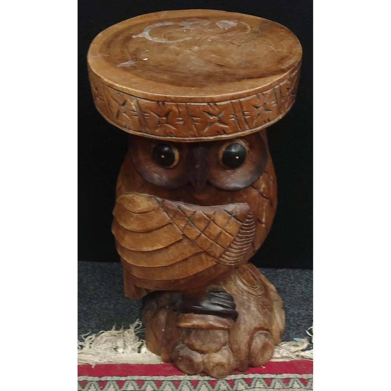 TWIT TWOO. A superb, well carved Owl side table standing 50cm tall. 30cm diameter top. A wise old purchase indeed.