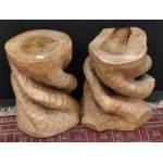 A pair of solid wood hand carved side tables each 50cm tall. Lovely pair in good clean condition.
