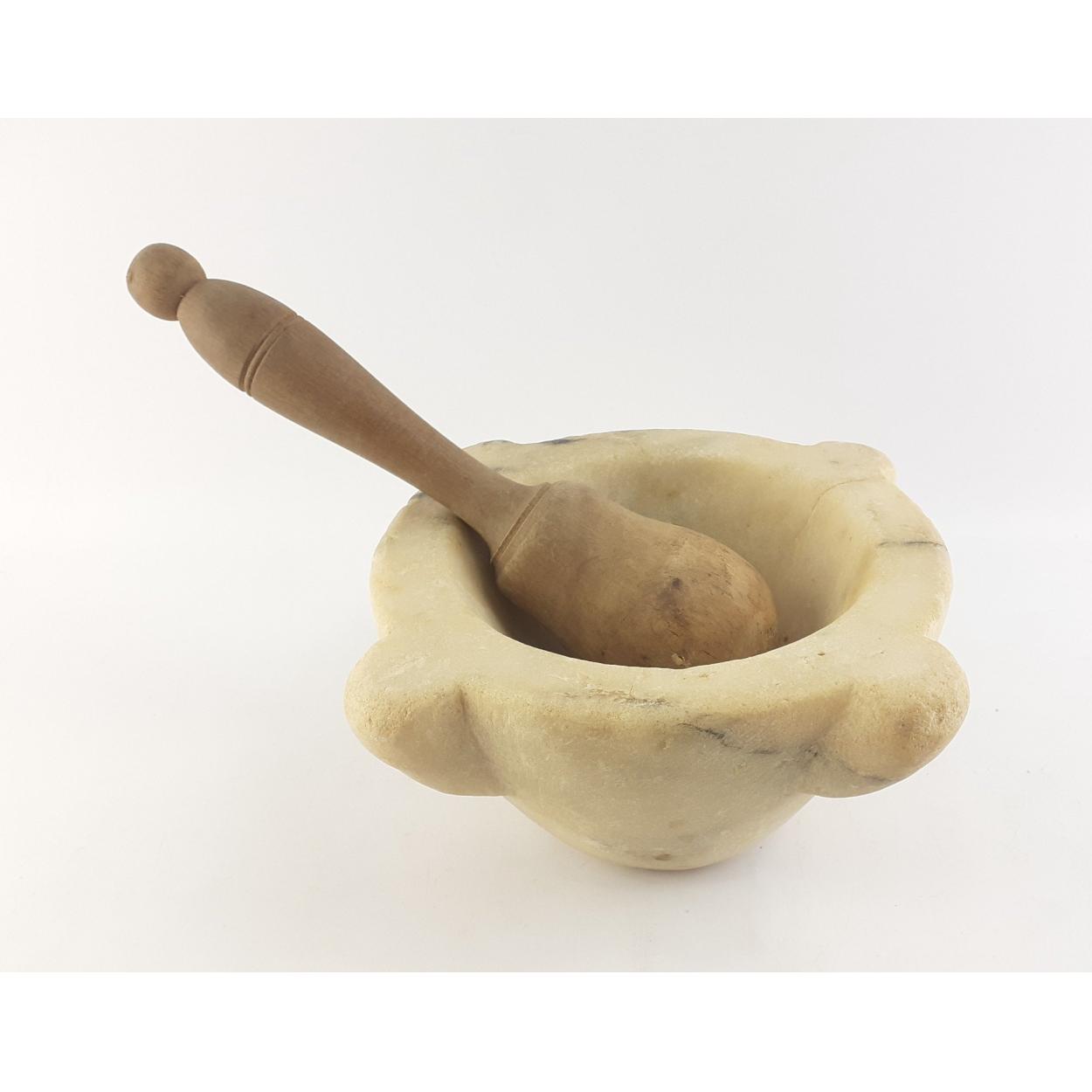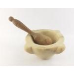 Antique heavy marble mortar bowl with solid wooden pestle. 20cm across.