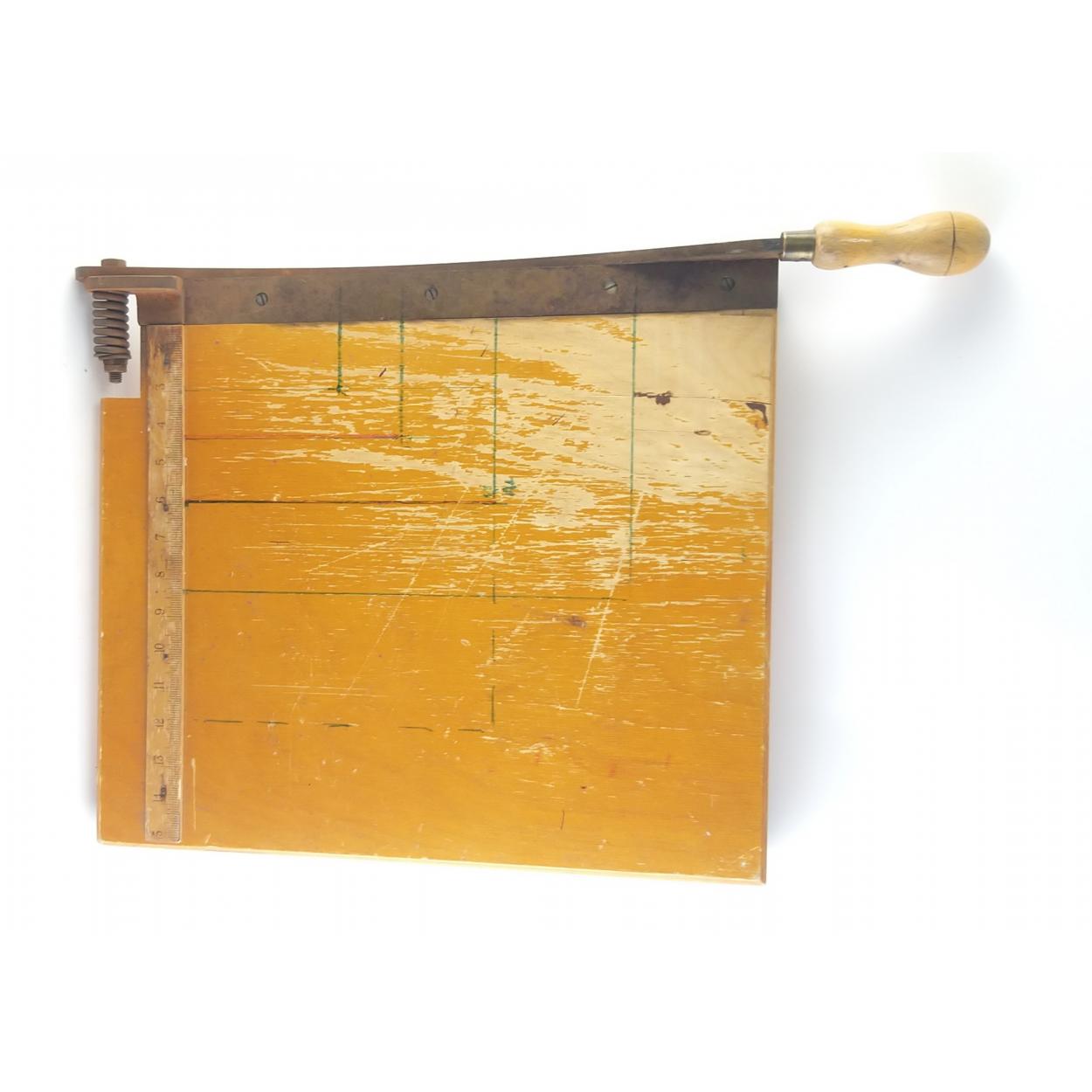 Recovered from the Old Peebles High School. A vintage wooden paper cutter.