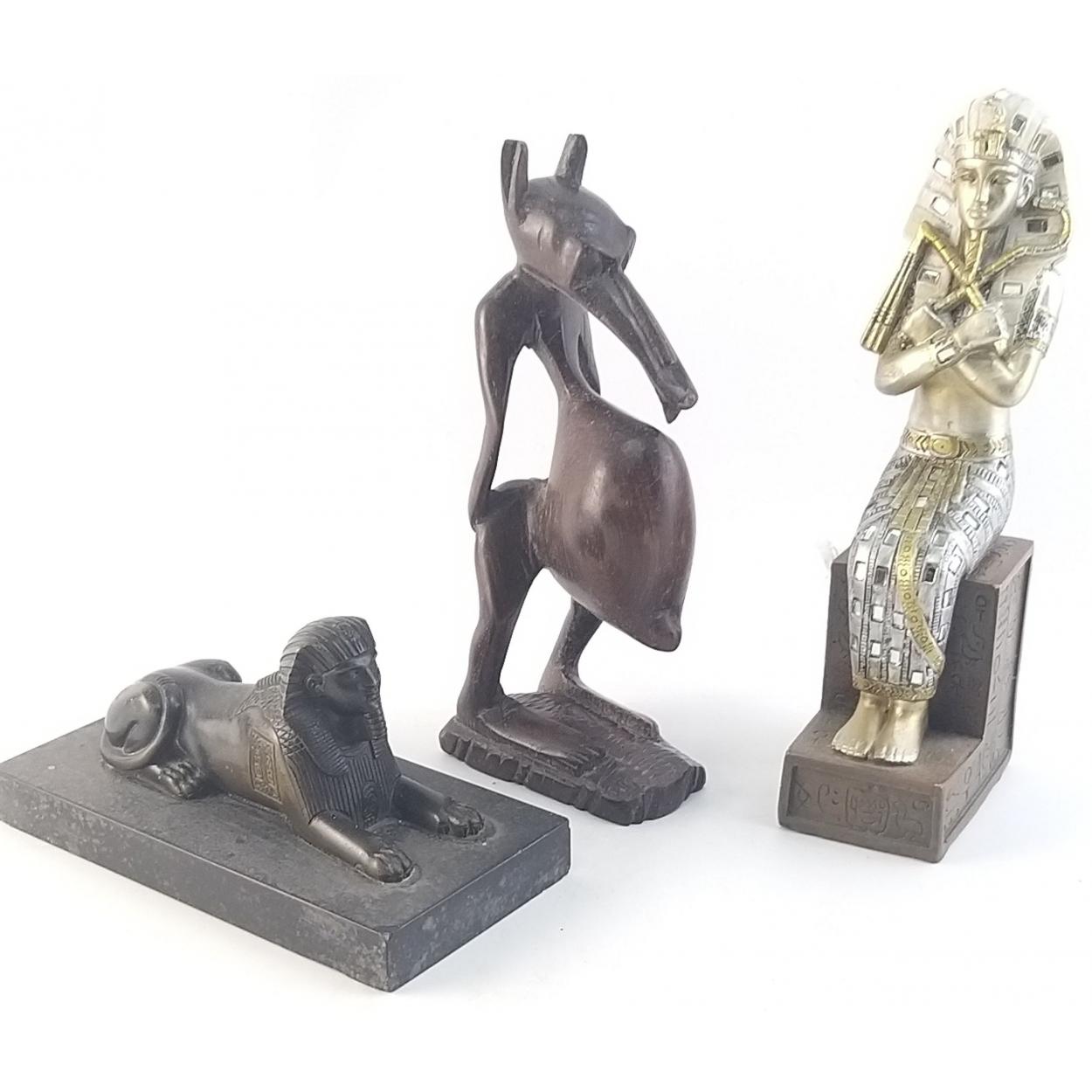 Interesting Pharoah statue 24cm , a stone like Sphinx model and an African carved figure.