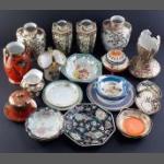A good collection of Oriental Ceramic pieces to include interesting teapot model of child with dog (slight damage to lid top) circular teapots, various Oriental figures . An interesting lot.
