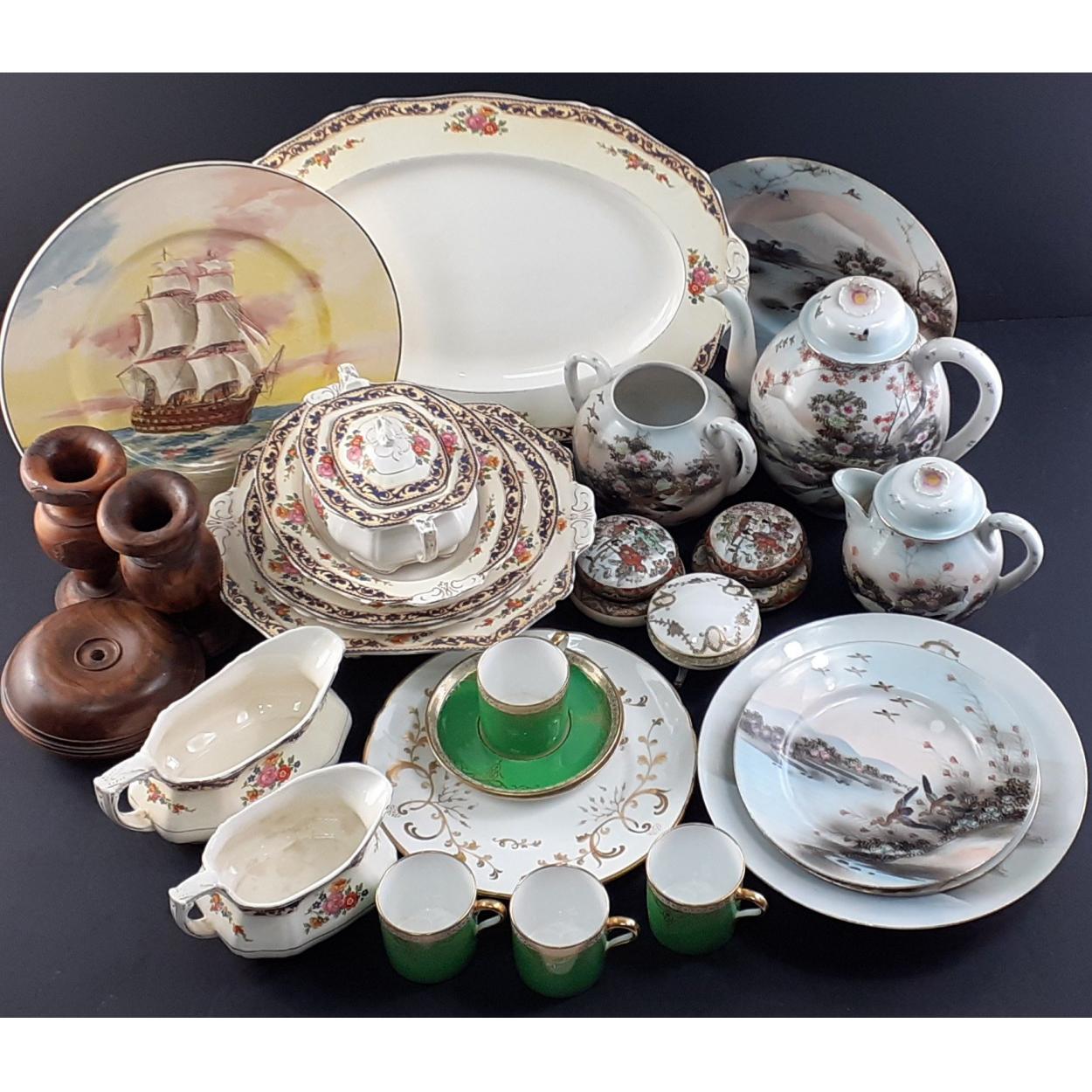 Mixed ceramic lot comprising part tea services some oriental. Nice decorative pieces in good usable order.