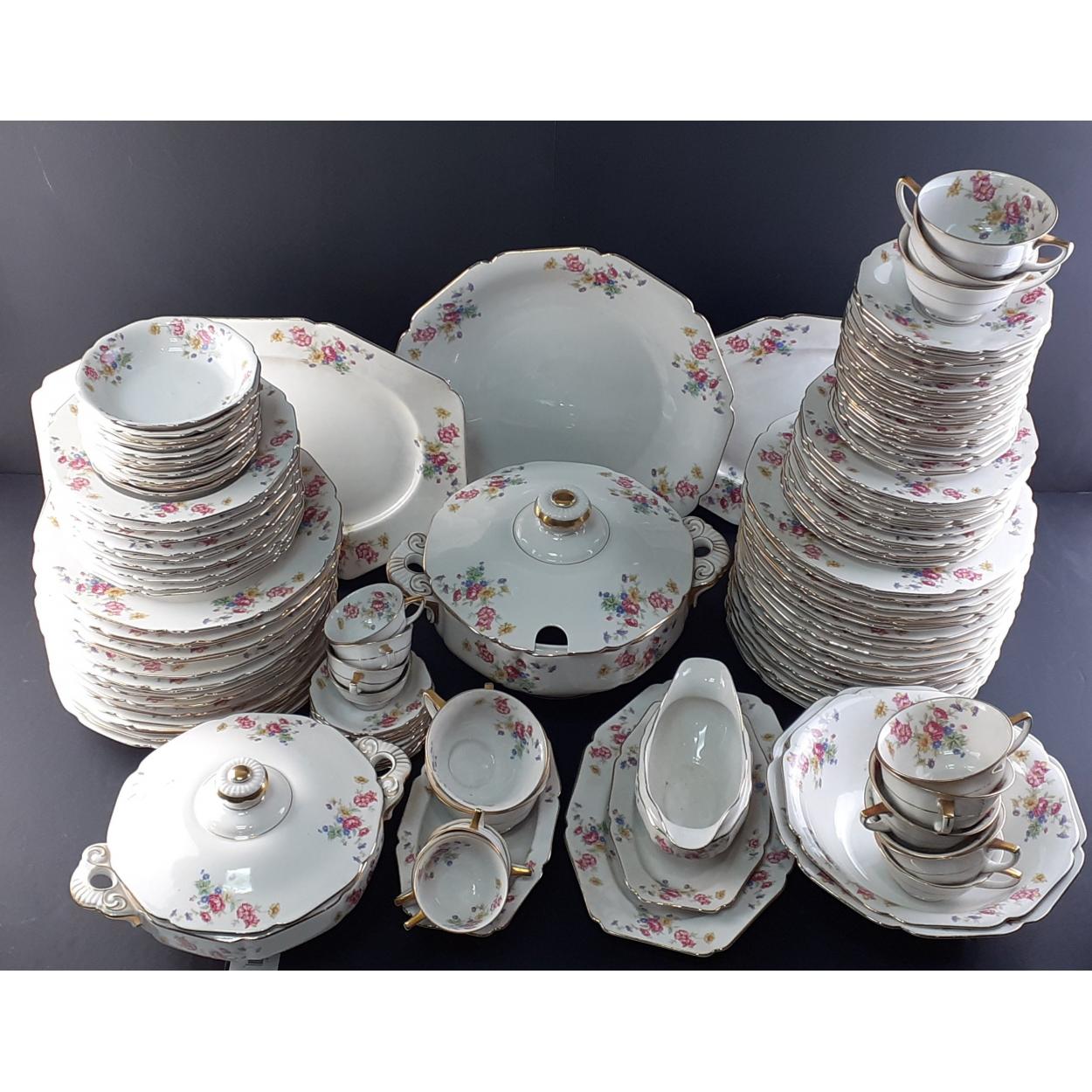 Vintage HEINRICH & Co. Selb Bavaria China dinner service Set Pink Rose Garland. Marked US Zone. Over 100 pieces including platters, tureens (note largest missing lid). Large plates, bowls and side plates etc. Also Large and small tea cups with saucers. A nice useable large service in good condition.