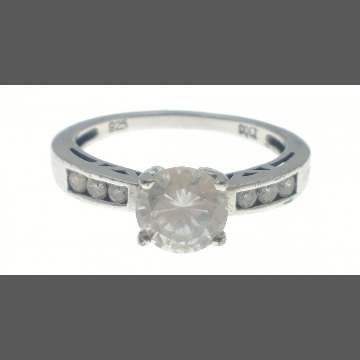 A silver 925 stamped dress ring with a large white cubic zirconium stone centred(dimensions 6mm diameter) - ring size Q gross weight 3.12g approx