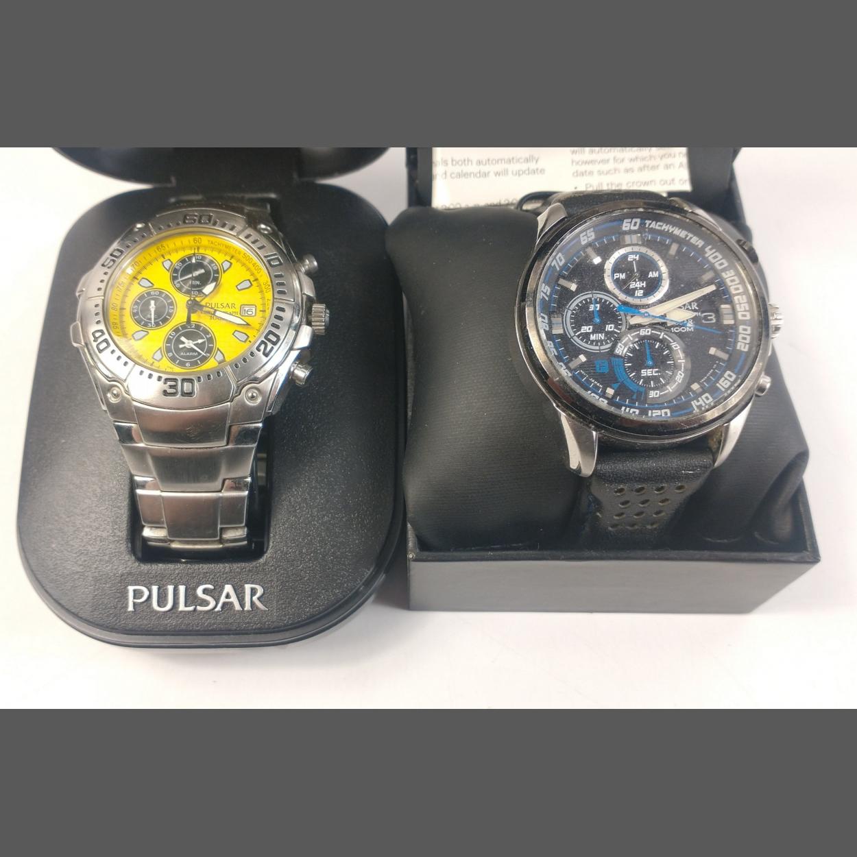 A PULSAR 690600 (VR43-X002) boxed watch, and a boxed yellow faced PULSAR 8N0708 watch