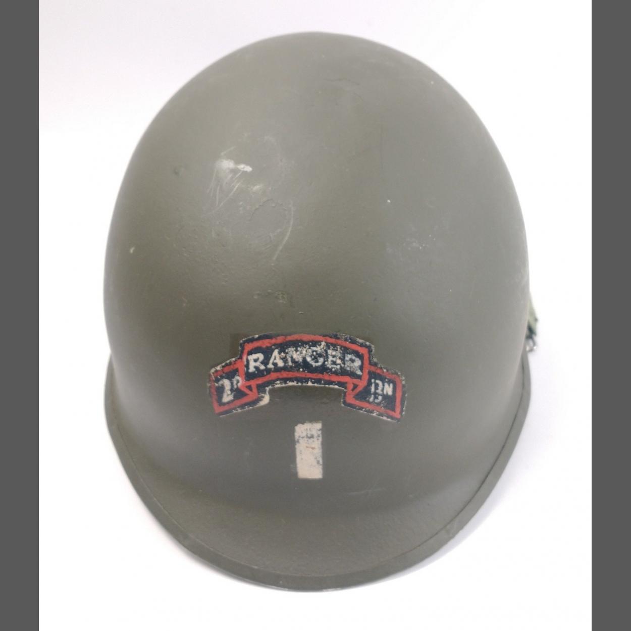 Korean War era United States US M1 Infantry helmet with 2nd Battalion US Ranger decal and liner. Liner has a makers stamp dated 1953