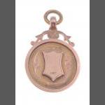 A gold fob medal with 9ct Hall Marks from Chester 1932 in Selkirk Jewellers box. Reputedly awarded to a member of the Kelso team who were winners of the 1933 Selkirk Rugby 7s. Measures 22mm in diameter and weighs 5.2g approx.