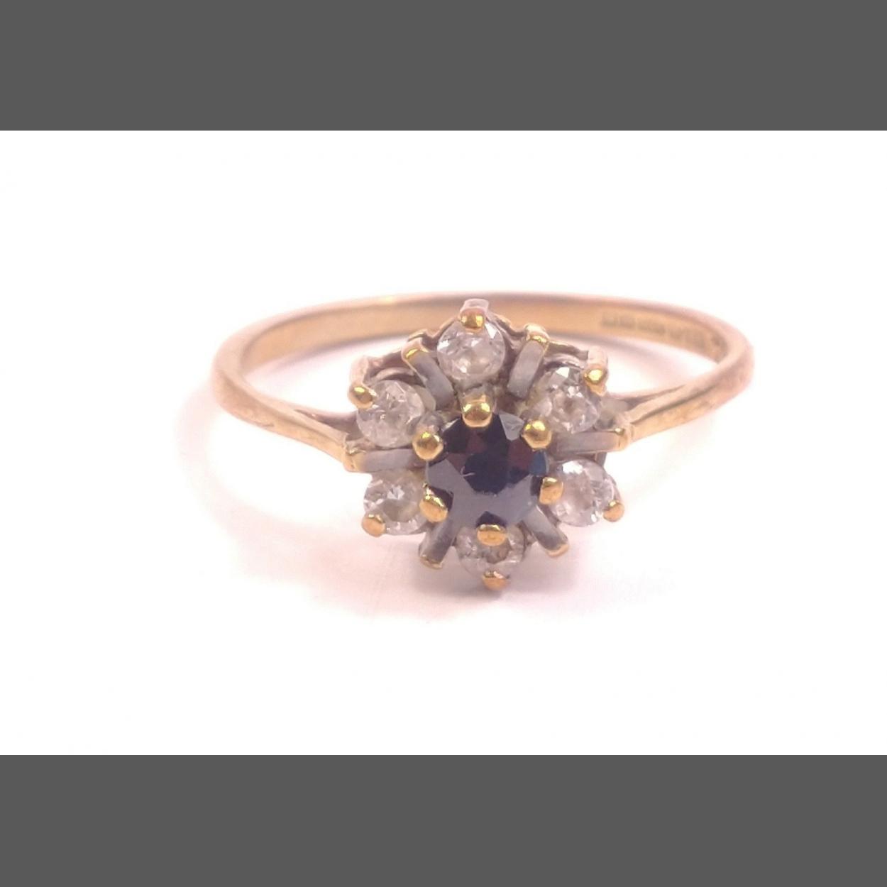 Gold 9ct stamped CZ ring. Size J. Weighs 1.2g approx. In local jewellers box.