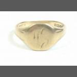 Gold 9ct Gents signet ring with worn initials. Size U. Weighs 4.6g approx