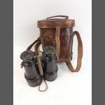 A nice pair of WWI era binoculars in a 1917 G. Battle & Co. stamped case. Binoculars are marked LeMaire Paris and carry a broad arrow military mark. They are optically good.