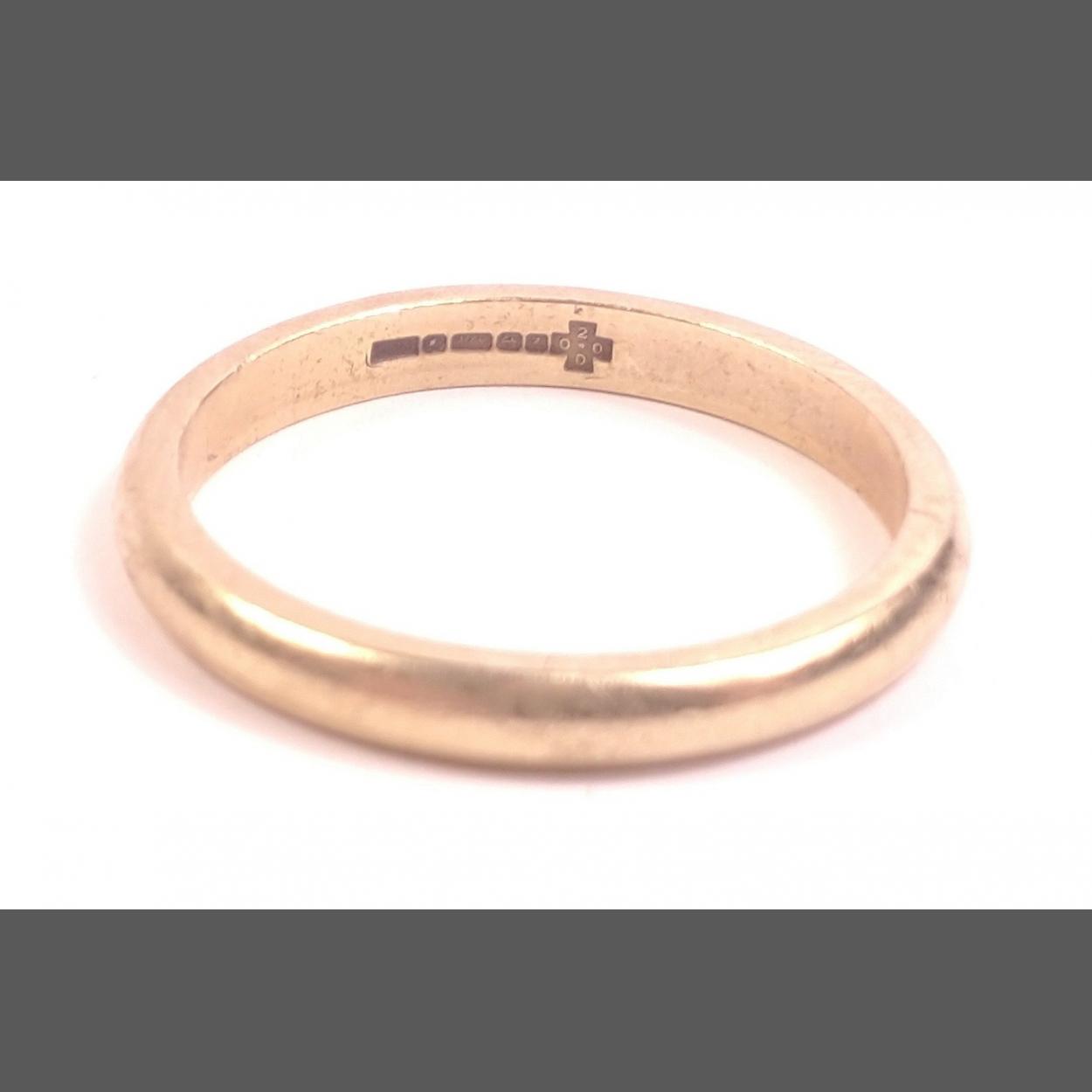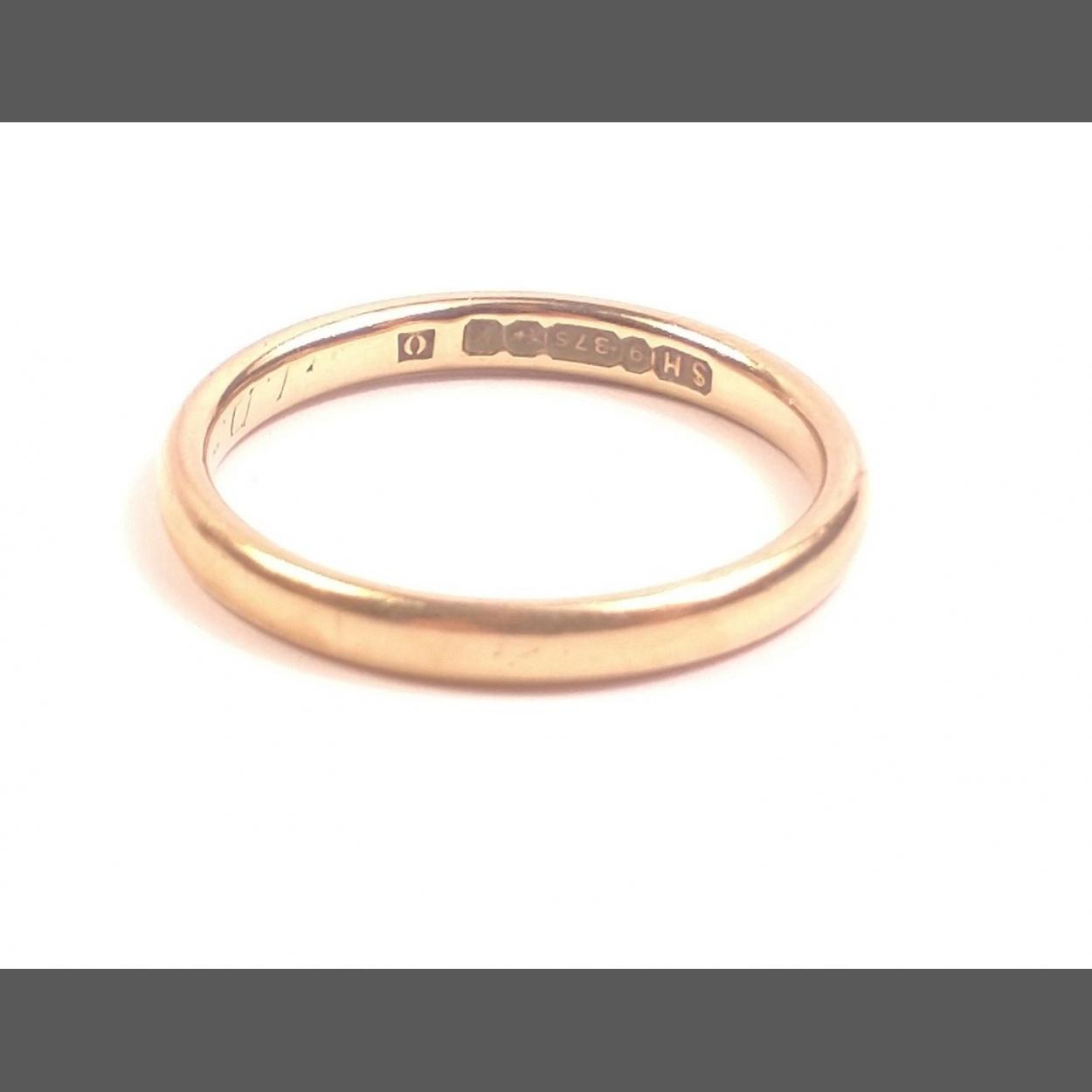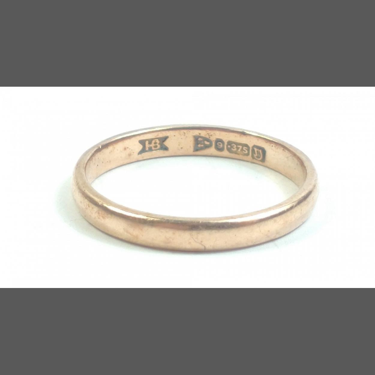Gold wedding band with full 9ct hallmarks. Size N, weighs 2.0g approx.