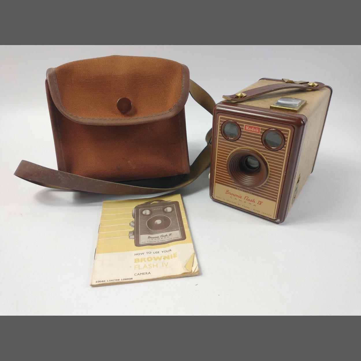 A BROWNIE FLASH IV camera with instructions and carrying case