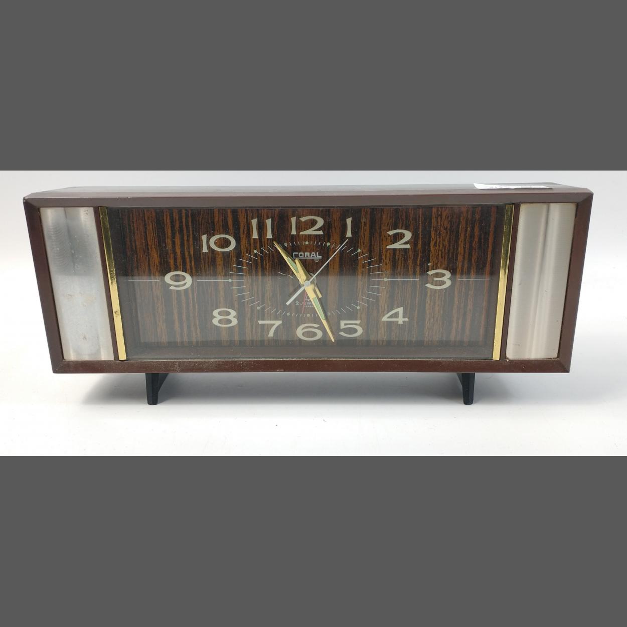 A RETRO Coral branded c1970's hand-winding mantle clock / dimensions 30cm long x 12cm height x 5.5cm depth approx