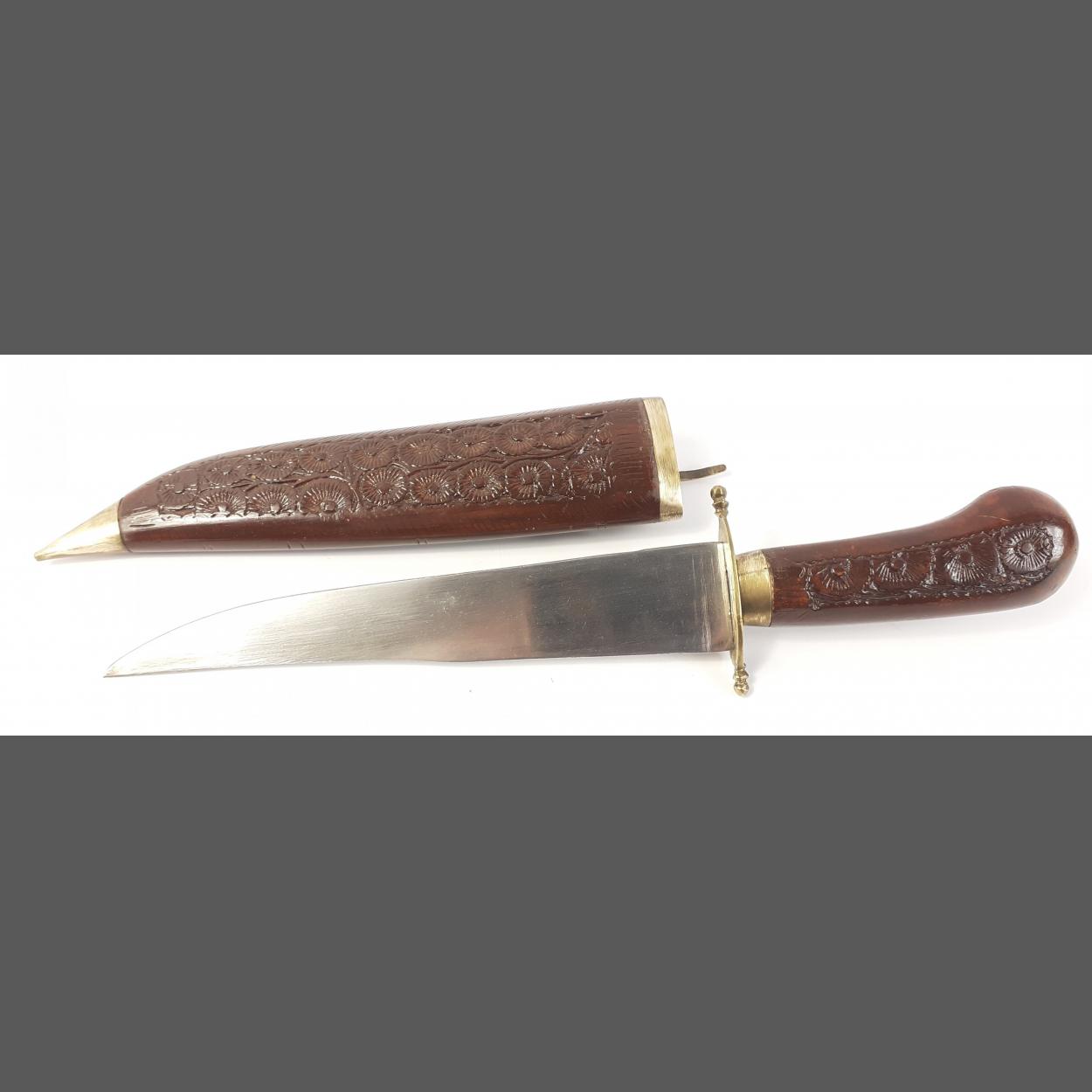 A modern Middle Eastern dagger with a carved wooden and brass sheath, total length 34cm