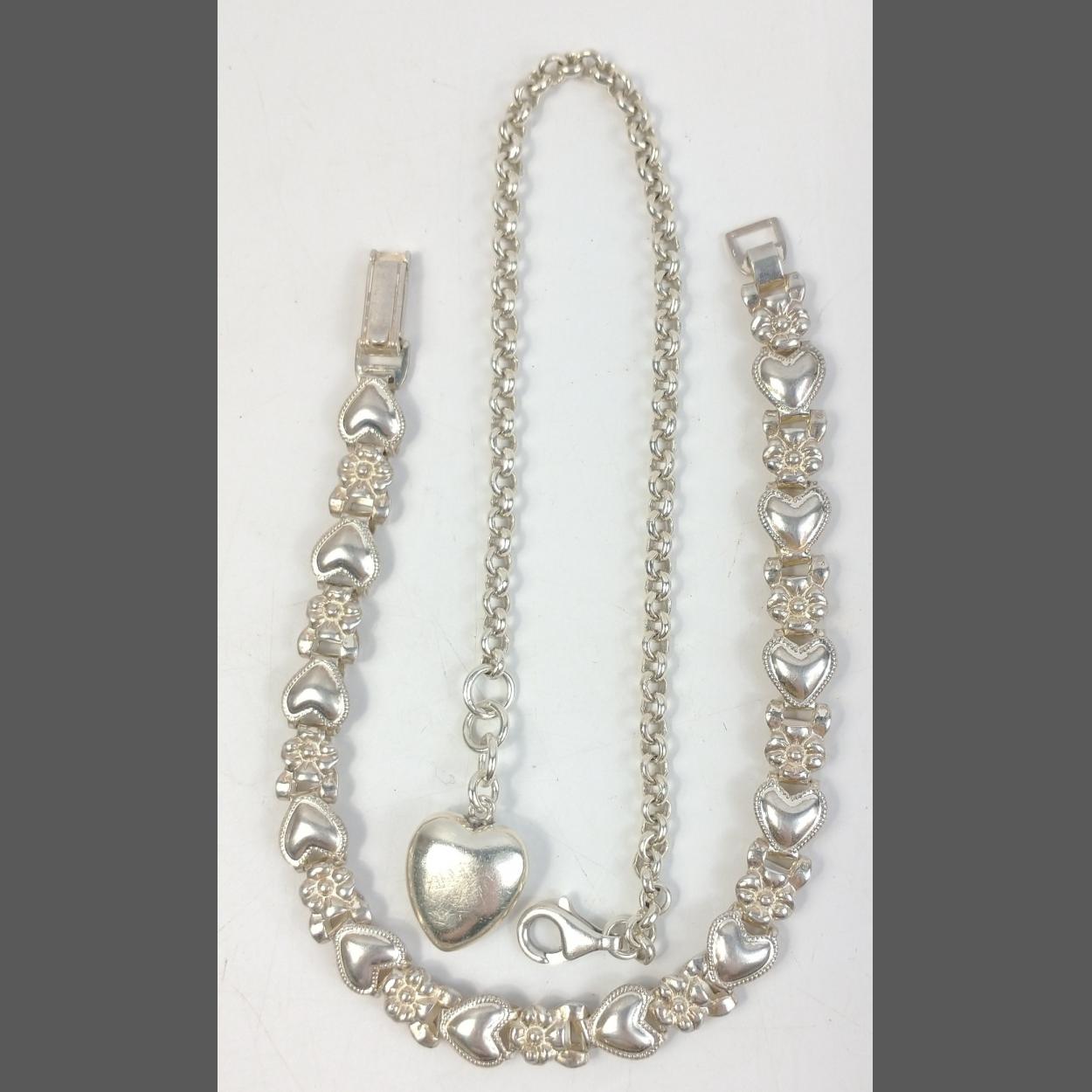 Valentine's day is fast approaching - celebrate with these two heart-shaped bracelets, both stamped 925 the first with heart-shaped links is approx 18cm, the other, a chain, also approx 18cm with a hearty-shaped pendant, weight 16.1g approx
