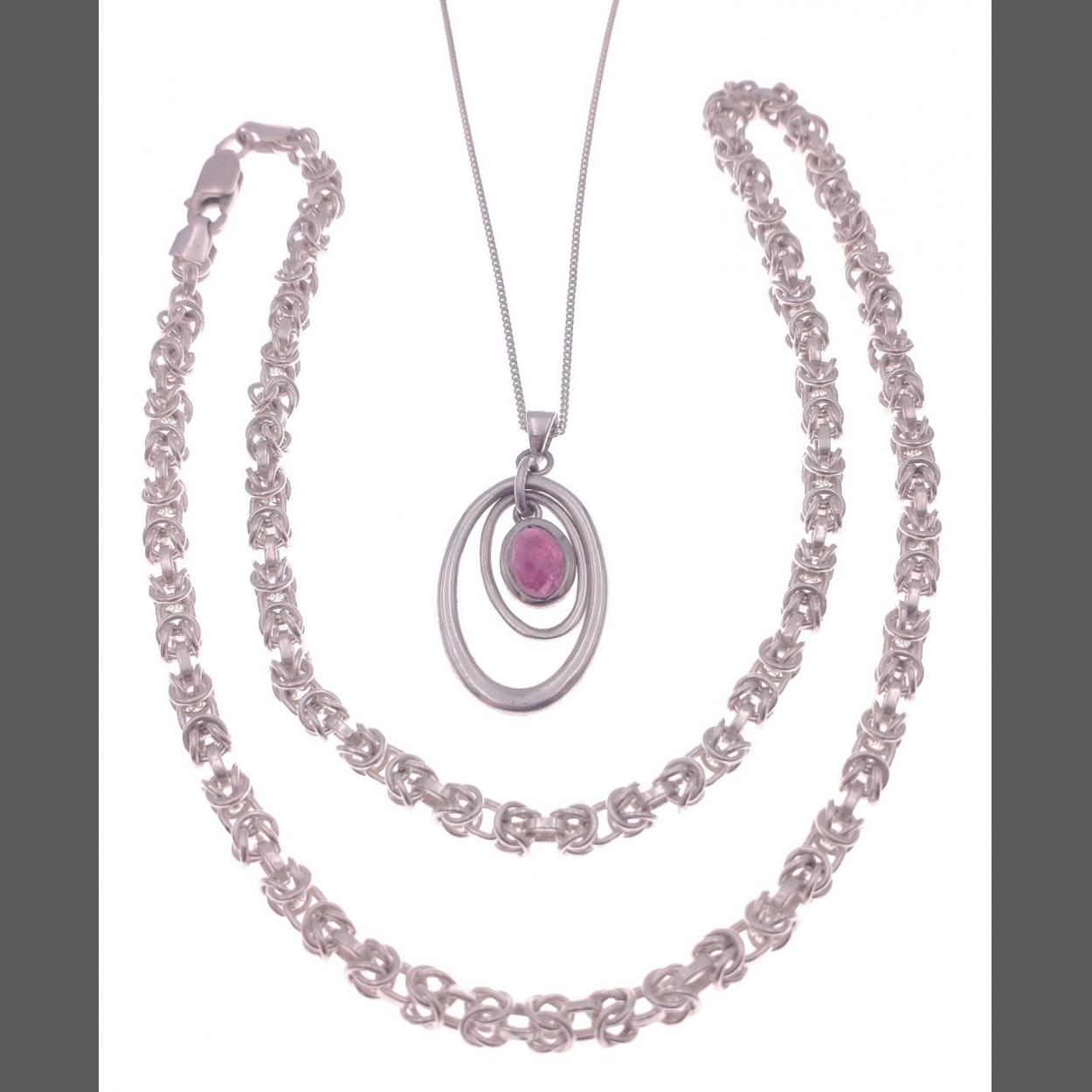 Two silver stamped items to include a nice silver chain 925 weight 22.55g approx with also a silver chain and pendant with centred purple stone gross weight 4.60g approx