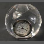 An unusual EDINBURGH CRYSTAL golf ball shaped clock 5cm high