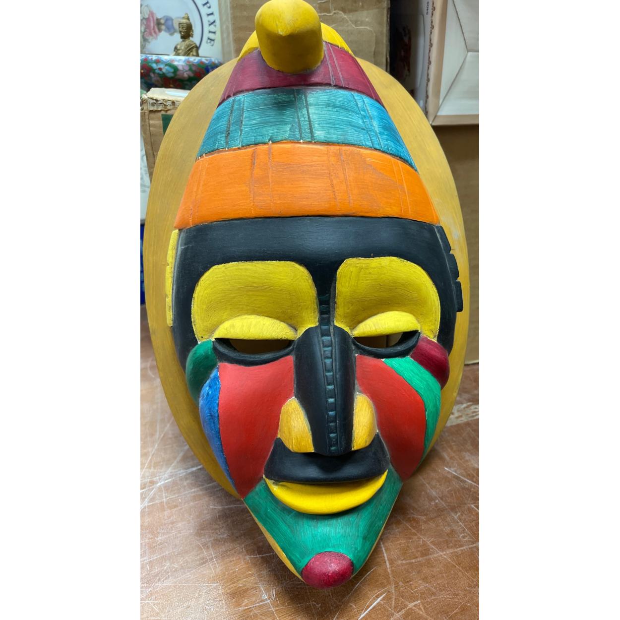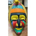 A colourful hand painted and UNUSUAL African native balsa wood decorative face mask - dimensions 35cm height x 25cm width approx