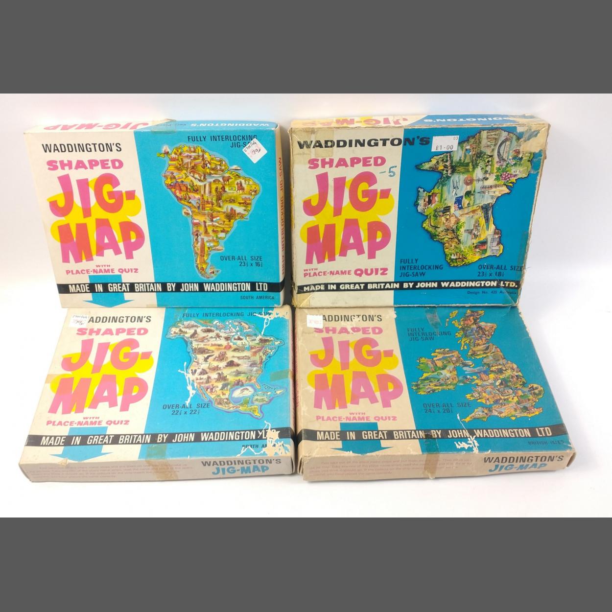 Four WADDINGTONS shaped JIG-MAPS including British Isles (stock no 560), North America (562), South America (558) and Australia (425)
