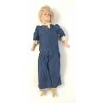 A small vintage composite doll 38cm high approx with soft body and hard limbs and face. Particularly nicely done legs with Edwardian style boots and a very pleasant pretty face with real hair. Slight damage to nose, clothing may be original. A lovely little doll. Indistinct mark to neck piece.