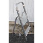 A two-step aluminium stepladder with a decorator's platform