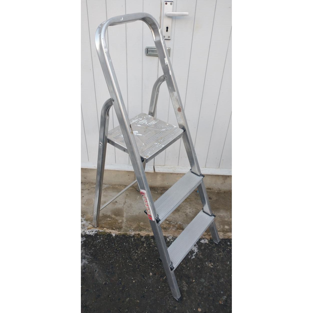 A one-step aluminium stepladder with a decorator's platform