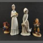 A BESWICK stag standing 20cm tall and 2 HUMMEL figurines being the Apple Tree Boy (15cm) and a girl with a basket (11cm), no damage