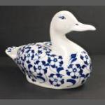 A large CARDINAL FINE PORCELAIN duck decorated with blue flowers, approx 30cm long