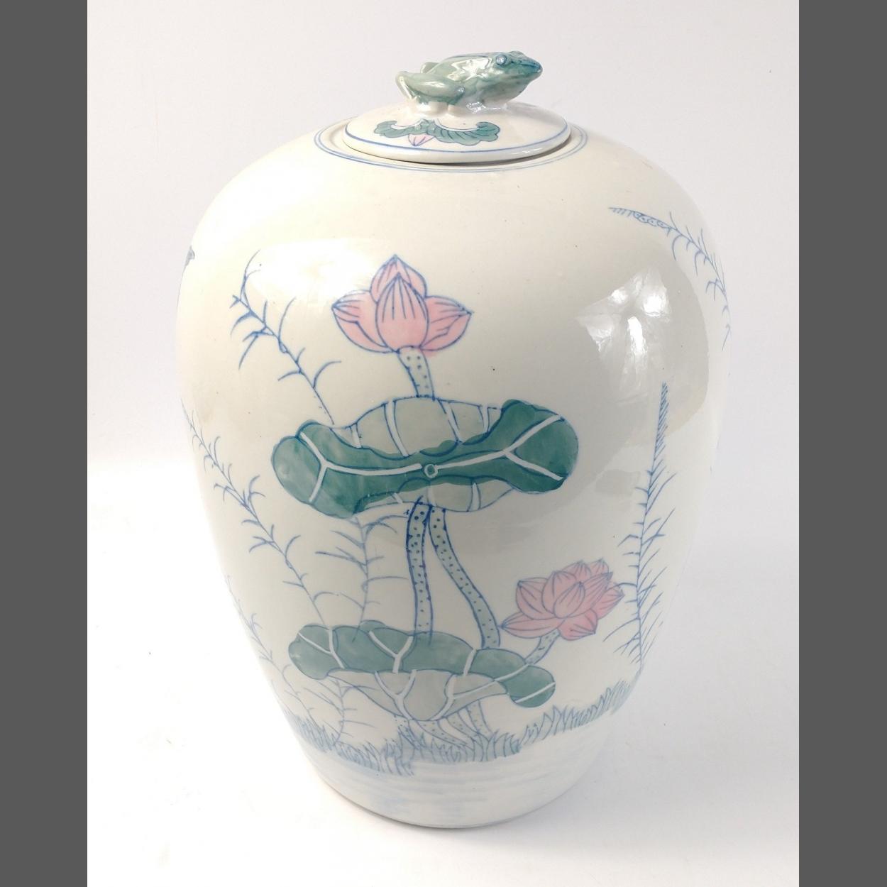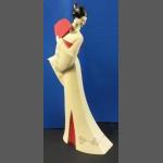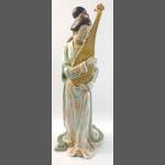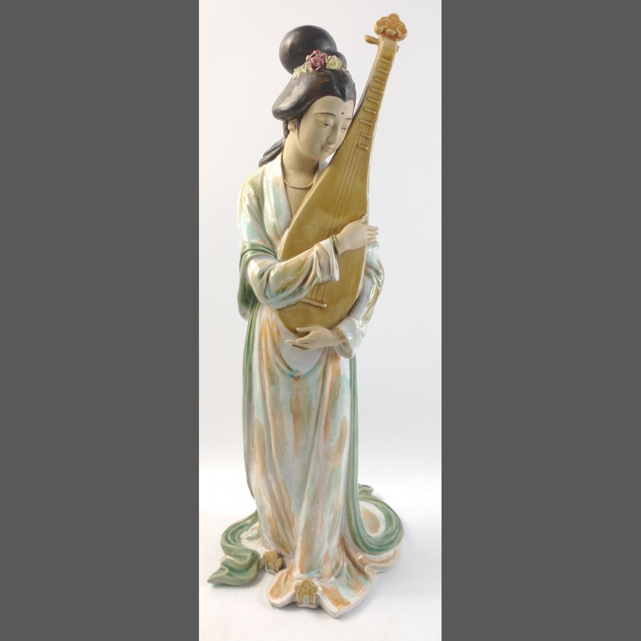 A large ceramic Oriental lady lute player. Stands 55cm high approx and in good overall condition (missing one finger). Marks to base.