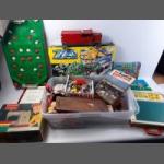 An interesting collection of vintage toys to include a boxed sewing machine, a Lego kit, a built Meccano lorry, a table football kit, a set of snooker balls, and various other super items.