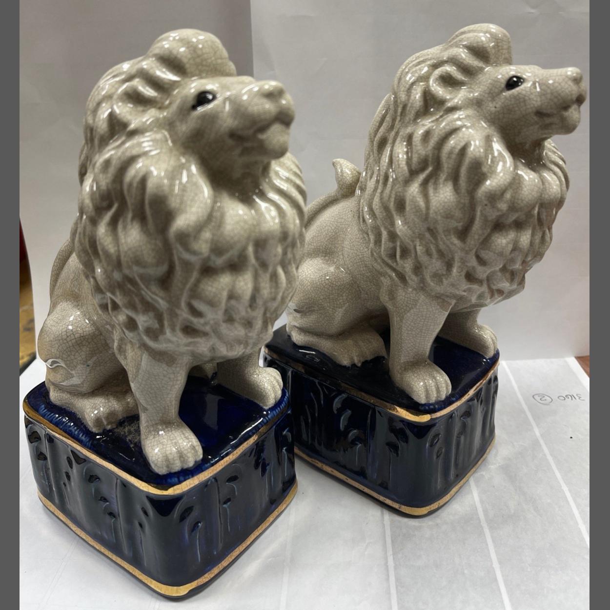 A pair of ORIENTAL ornamental pottery FOO LIONS in a fabulous turquoise blue glaze finish - dimensions each 21cm tall x 7cm wide approx