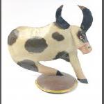 A funky Indian painted metal cow ornament stands approx 22cm tall length approx 25cm
