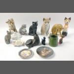 A collection of CATS in various media including a highly unusual black cat cigarette lighter and a pair of playful kittens by ROYAL COPENHAGEN plus others in brass and wood